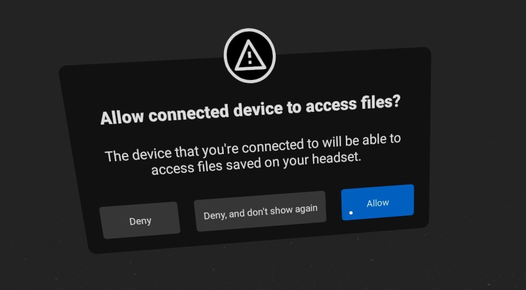2.If a pop-up appears inside the Meta Quest headset asking to allow the connection, select “Allow”.