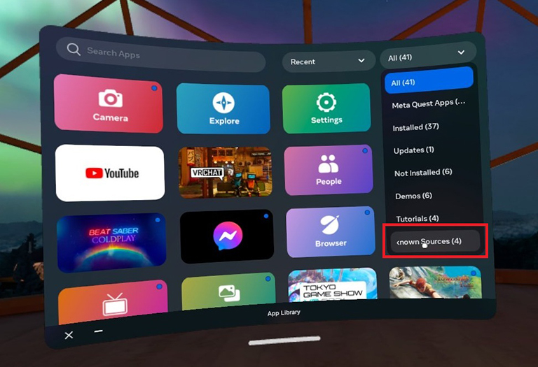 At this time, the app list may contain a category such as “Unknown Sources” or “Apps from Unknown Sources,” and the app may be installed within it.
