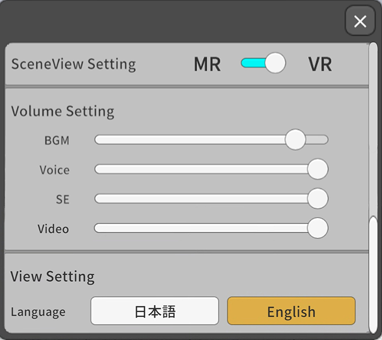 - You can switch between Japanese and English (however, the language of text or audio within the content will not change).
