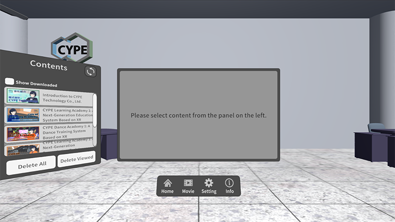 When you launch the app, it automatically connects to the server and loads a list of available content (However, you must connect your headset to the internet beforehand).